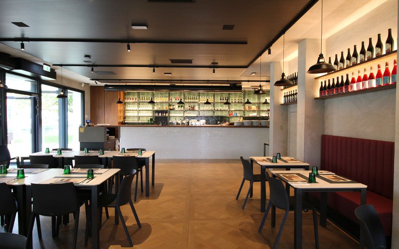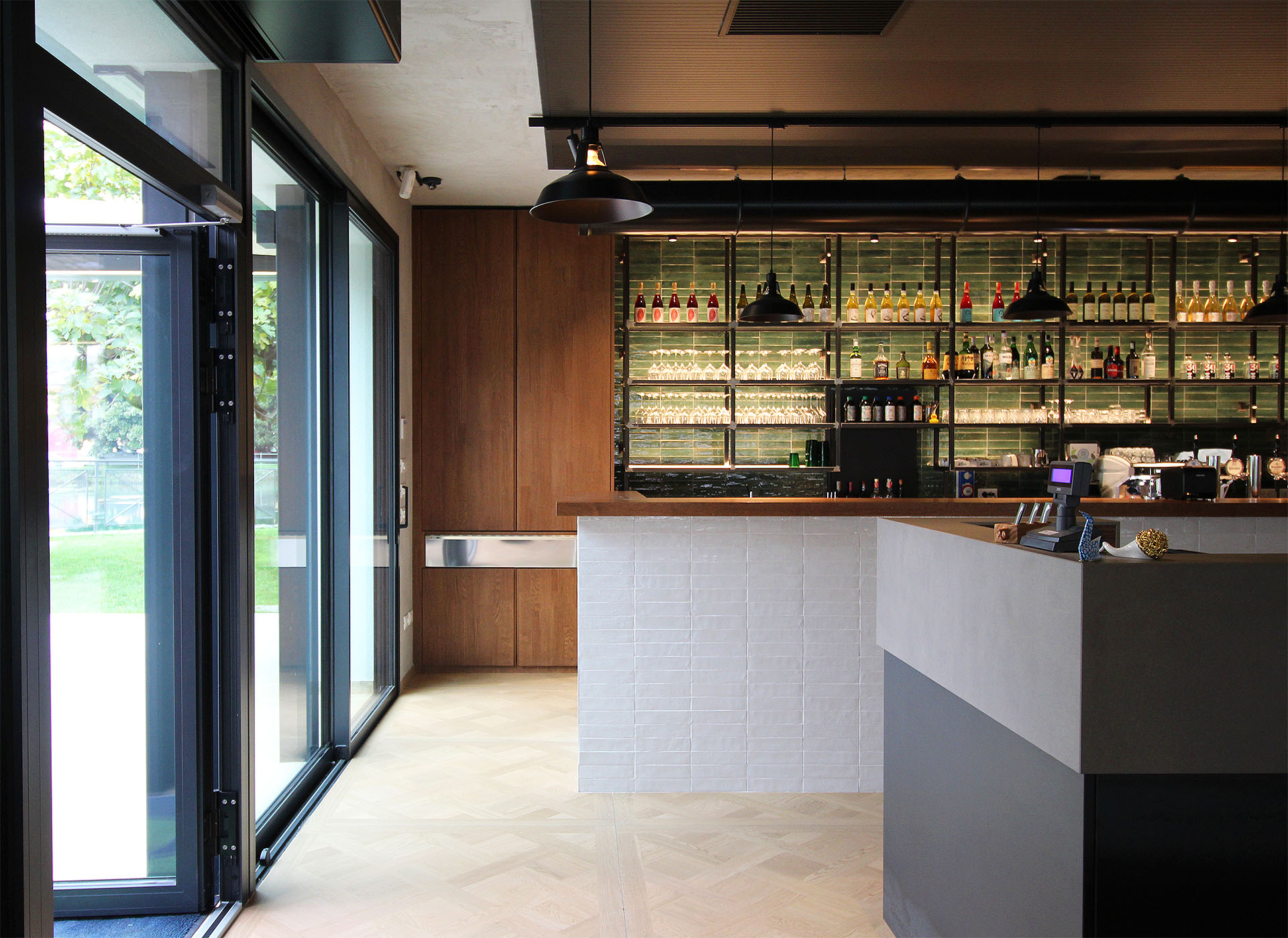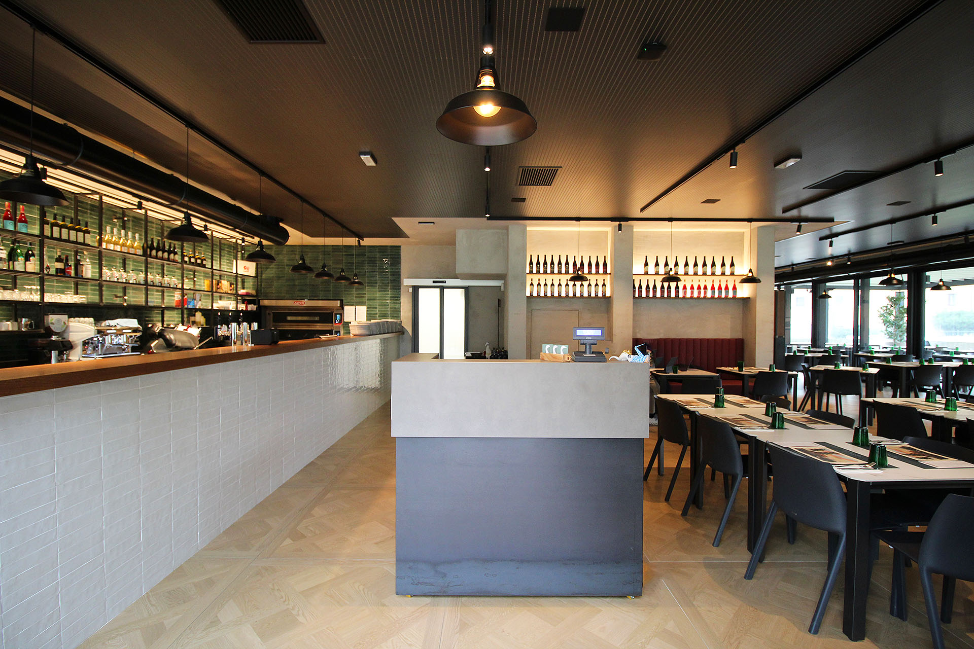 Un ristorante-pizzeria immerso nel Parco del Laghetto Fontanon, che fonde armoniosamente la natura esterna con un design industriale minimale e accogliente. Il concept sfrutta materiali grezzi e naturali (legno, cemento, ferro) per creare un ambiente luminoso e contemporaneo in equilibrio con il paesaggio, offrendo un'esperienza rilassata e curata.